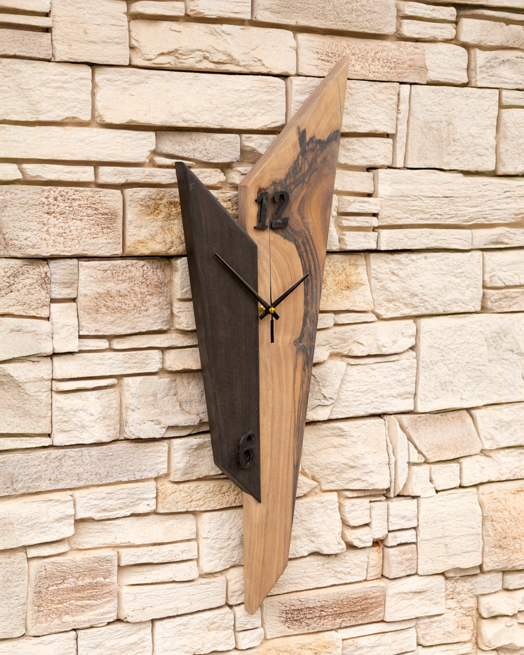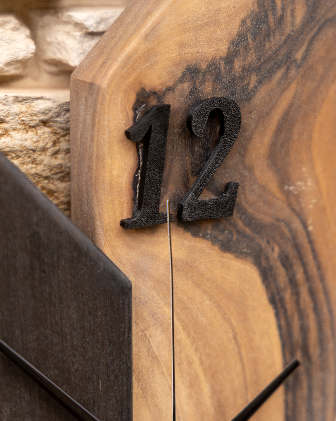 Nástěnné hodiny spojují elegantní kontrast černé barvy a světlého ořechového dřeva, čímž vzniká nadčasový a luxusní designový doplněk. Minimalistické linie a precizní ruční zpracování zvýrazňují přirozenou krásu dřeva a dodávají prostoru harmonii a sofistikovanost.