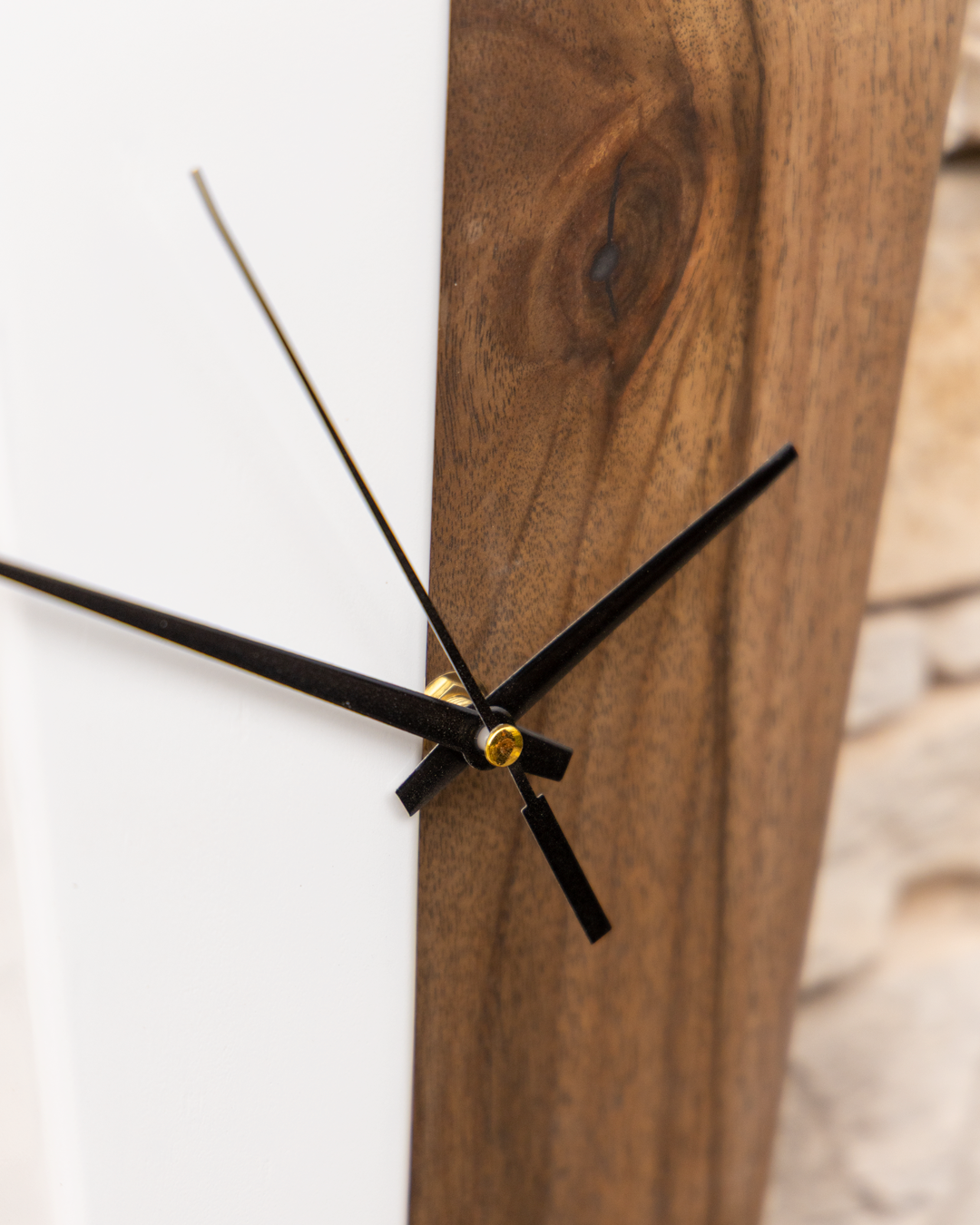 Nástěnné designové hodiny v kombinaci přírodního dřeva a bílé barvy jsou výrazným doplňkem moderního interiéru. Minimalistický design podtrhuje přirozenou krásu dřeva a vytváří harmonický kontrast s čistotou bílé plochy.
