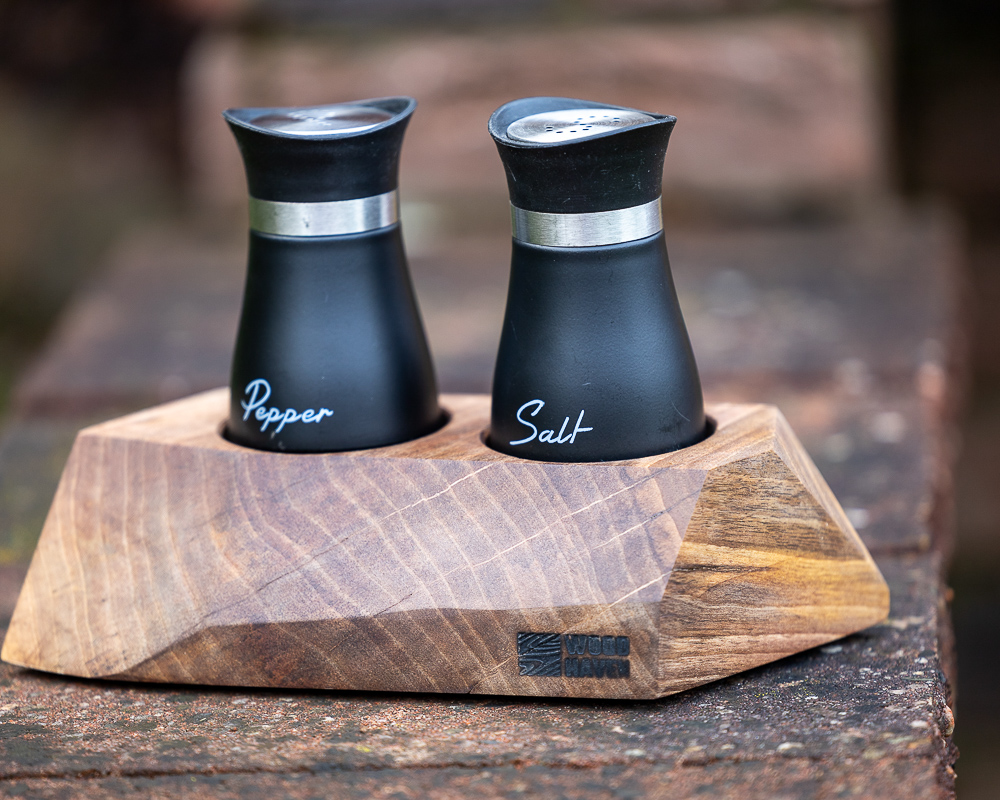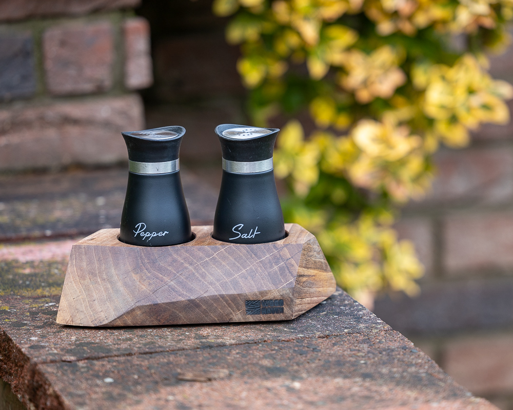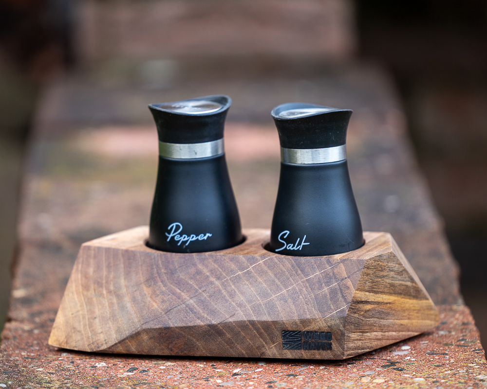 Designový držák na solničku a pepřenku z masivního ořechového dřeva je elegantní a praktický doplněk vašeho jídelního stolu. Dřevěná konstrukce vyniká výraznou kresbou a přirozeným teplým odstínem ořechu, který dokonale kontrastuje s ladně černými lahvičkami na sůl a pepř. Perfektní volba pro ty, kdo chtějí do svého stolování vnést dávku přírodního luxusu a moderní čistoty zároveň.