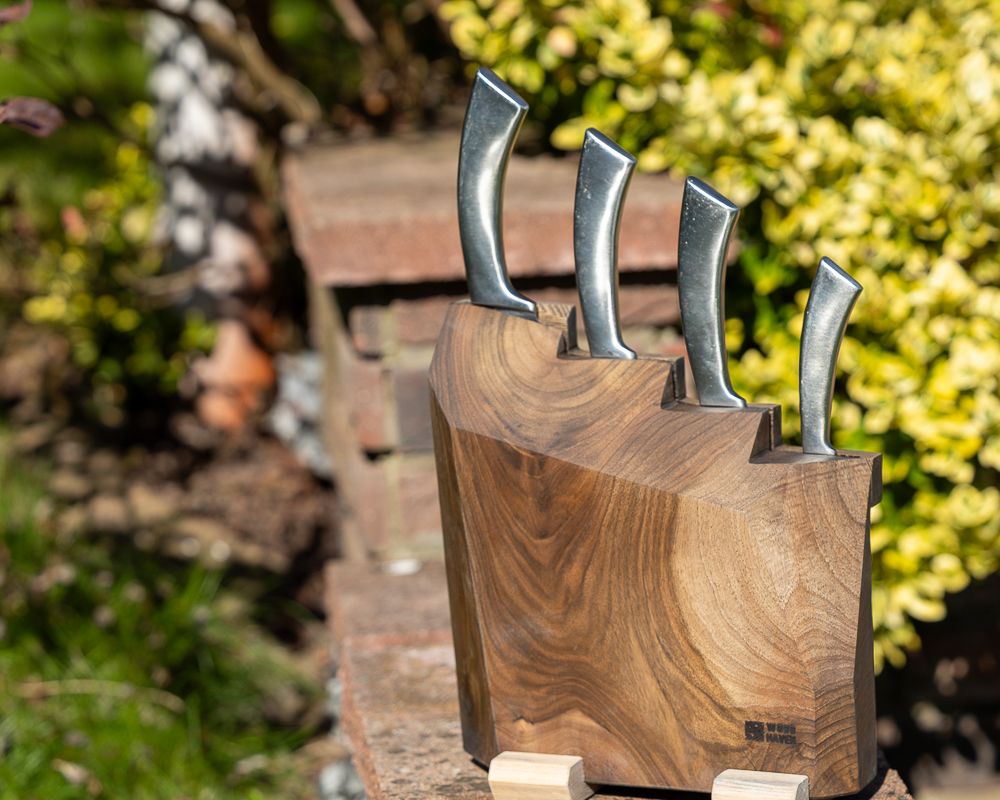 Dřevěný stojan na čtyři nože je ideálním řešením pro uložení vašich nožů v kuchyni. Vyrobený z kvalitního ořechového dřeva, tento originální kus přinese do vaší domácnosti nejen praktičnost, ale i estetický prvek. Ořechové dřevo je známé svou pevností a krásou, která dodá důraz každé kuchyni.