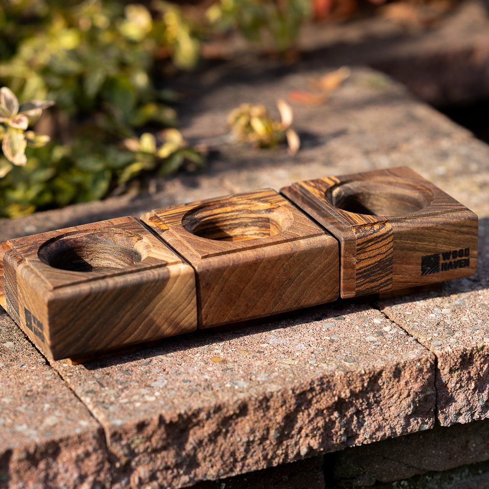 Elegantní svícen pro jednu svíčku z kombinace ořechového dřeva a exotického zebrána přináší do interiéru luxusní vzhled a přirozenou harmonii kontrastních tónů.